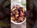Ingredients:- 1 pound red potatoes- 2 tablespoons olive oil- 1 teaspoon garlic powder- 1 teaspoon dried thyme- Salt and pepper to tasteInstructions:1. Preheat oven to 400 degrees F.2. Cut the potatoes into bite-sized pieces.3. In a bowl, mix together olive oil, garlic powder, thyme, salt, and pepper.4. Add the potatoes to the bowl and toss to coat evenly.5. Spread the potatoes out on a baking sheet lined with parchment paper.6. Roast in the preheated oven for 25-30 minutes, or until golden brown and crispy on the outside.Garlic and Herb Red Potato Mash